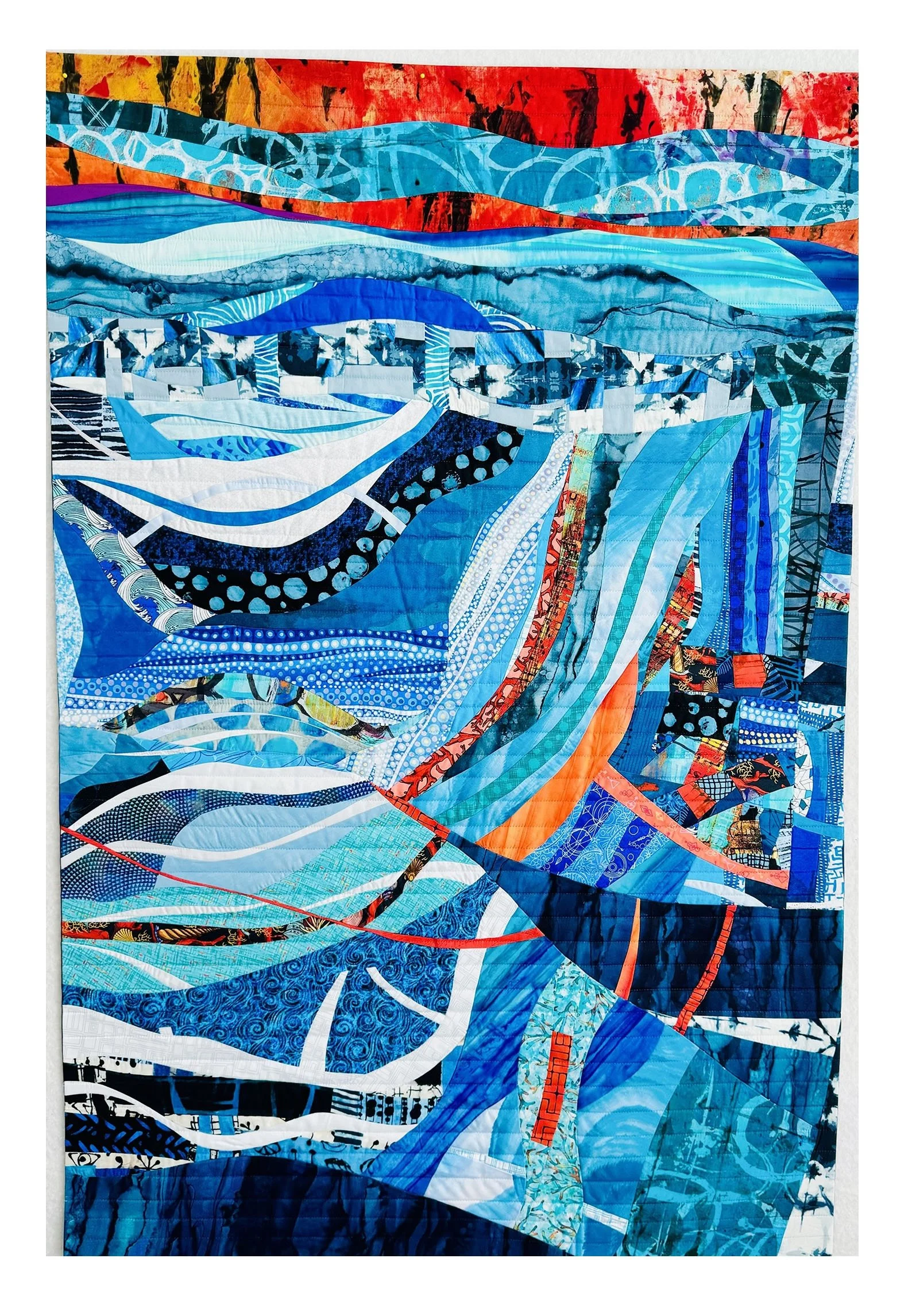 Exhibition Room One and Two –National Group Show. My work is "Summer and the Coral Sea", an original improvisational curved piece using commercial and hand-dyed fabrics. Dimensions: 47" x 32".In this show, Blue — the color, has been recognized for both positive and negative symbolic and psychological values. Talented artists and photographers present their contemporary interpretations. In this exhibit, Blue can permeate an entire image or can be used in a small section of an artwork. It can imbue radiance to inanimate objects and enliven elements of Nature. Extraordinary art! Thank you to the gallery for including my work.